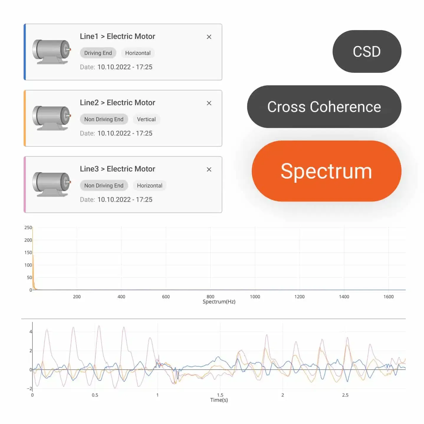 Yazılım: Eşikler, trendler ve otomatik arıza türü tespiti (ör. rulman hasarı, hizalama/denge problemleri, gevşeklik vb.) ile uyarı üretir.