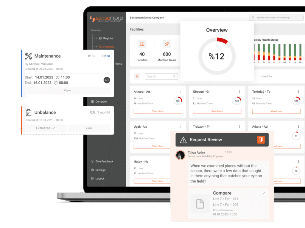 Sensemore; kablosuz sensörler, ağ geçidi (gateway) ve analitik yazılımından oluşan bir akıllı bakım platformudur.